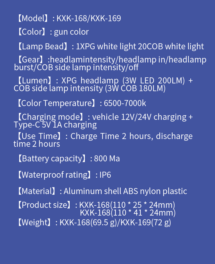 • Light source: COB * 30 pieces